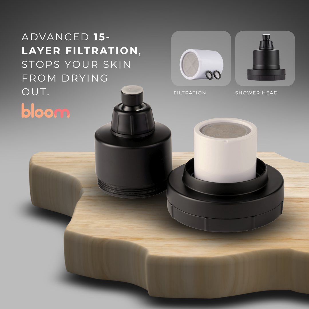 Most filtered showerheads only use KDF-55 or activated carbon materials as the "filter" but they don't contain anything for ultra-filtration capabilities to filter out physical contaminants. In other words, they don't do the job very well. We made Bloom to have the best water filtration capabilities on the market. Bloom combines both KDF-55 and activated carbon into its 15-layer filtration system. There is no showerhead filter like ours on the market.